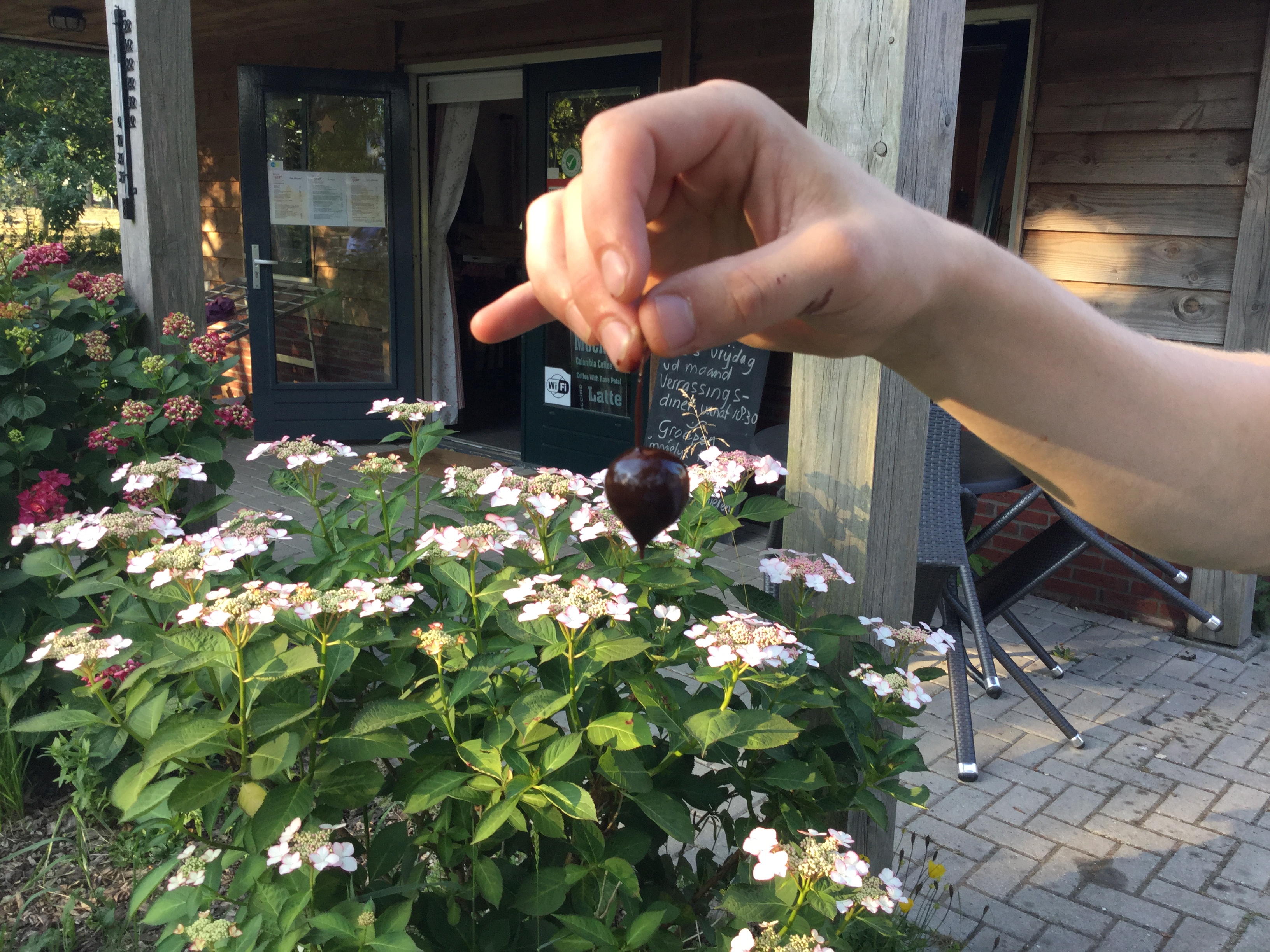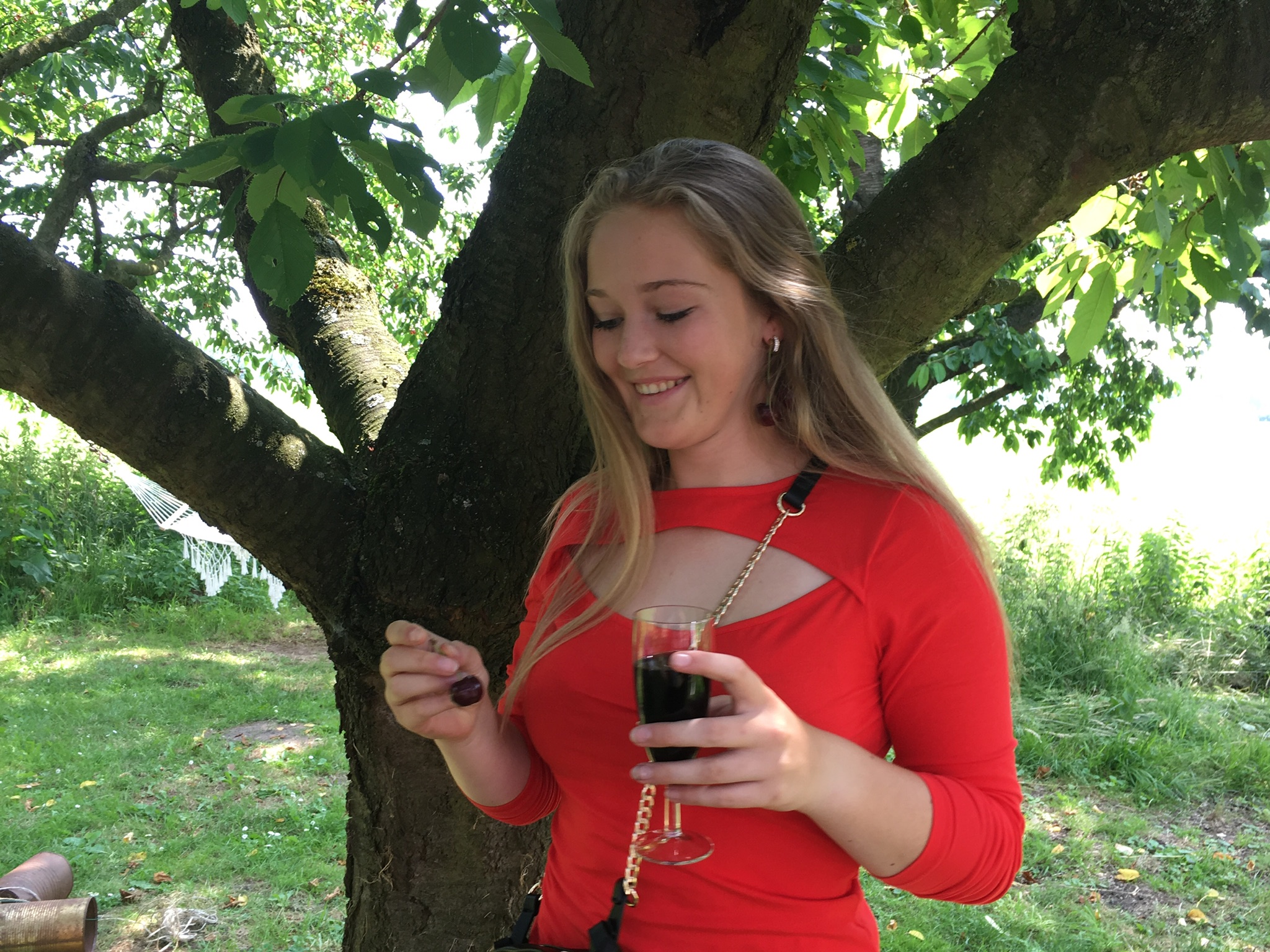 Zij plukt de eerste Kers, en voor alle aanwezigen is er een glas gratis kersensap