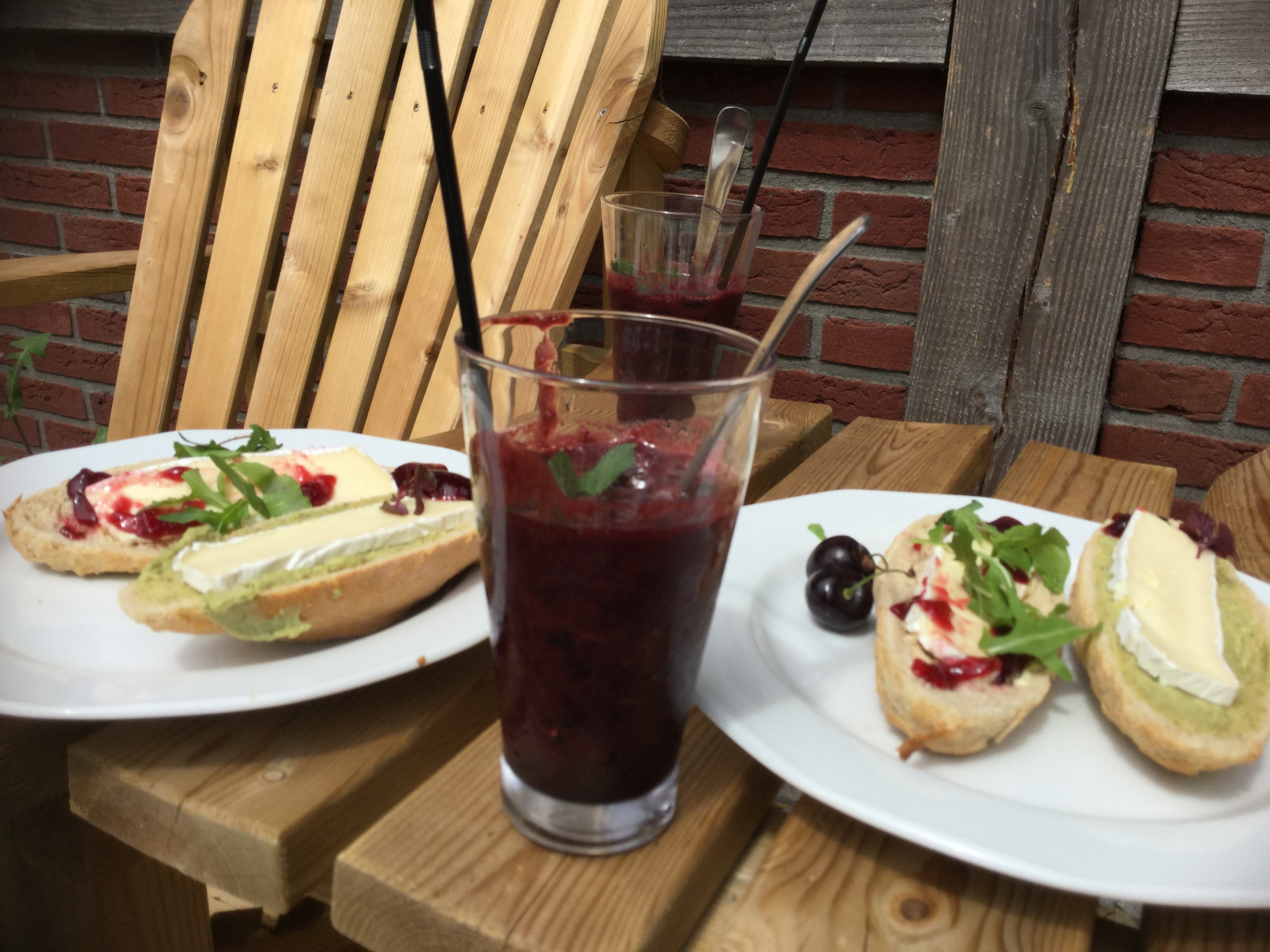 Veggie Kersen smoothie met verse munt. En broodje brie met kersen, mmmmmm